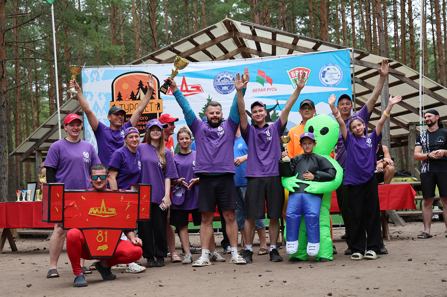 В воскресенье были подведены итоги насыщенных трех дней, награды нашли своих героев. Была раскрыта и главная интрига — кубок победителя 55-го турслета МАЗа завоевала команда Металлургов. А вот «бронзовый» кубок остался без хозяина, потому что после подсчетов турнирной таблицы у двух сборных оказалось одинаковое количество баллов: место разделили УГК/СГКА и ПКЗ.